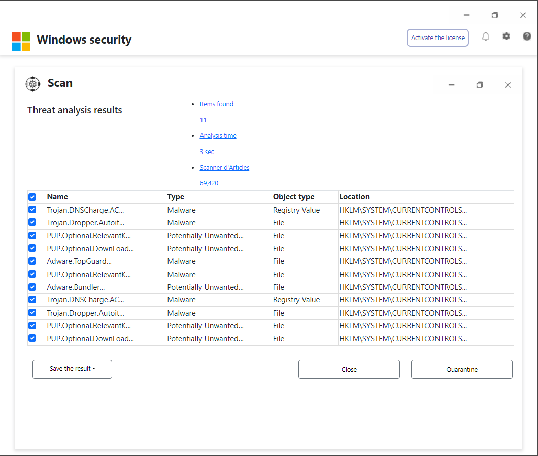 Une analyse Windows Defender a détecté un logiciel publicitaire potentiellement indésirable sur cet appareil, capable de voler des mots de passe, des identités en ligne, des informations financières, des fichiers personnels, des photos et des documents.